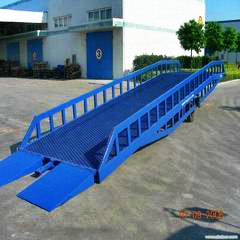 產(chǎn)品介紹:移動(dòng)登車橋是與叉車配合使用的貨物裝卸專用輔助設(shè)備。移動(dòng)式液壓登車橋采用人工液壓動(dòng)力,不需接動(dòng)力電源。只需單人操作,即可實(shí)現(xiàn)貨物的安全快速裝卸。