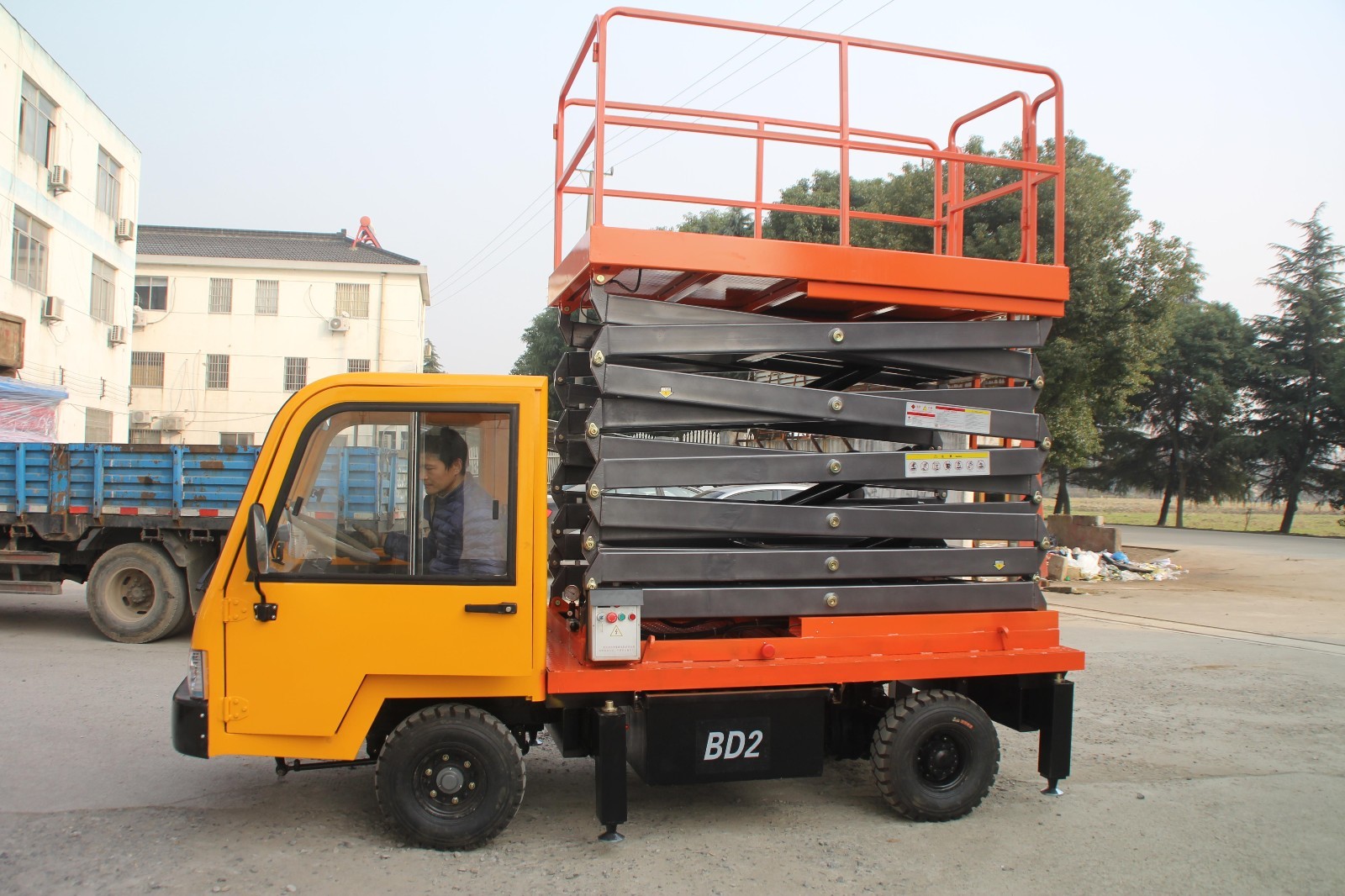 1、車載式升降機(jī)采用剪叉機(jī)械結(jié)構(gòu),使升降臺(tái)起升有較高的穩(wěn)定性,寬大的作業(yè)平臺(tái)和較高的承載能力,使高空作業(yè)范圍更大、并適合多人同時(shí)作業(yè)。